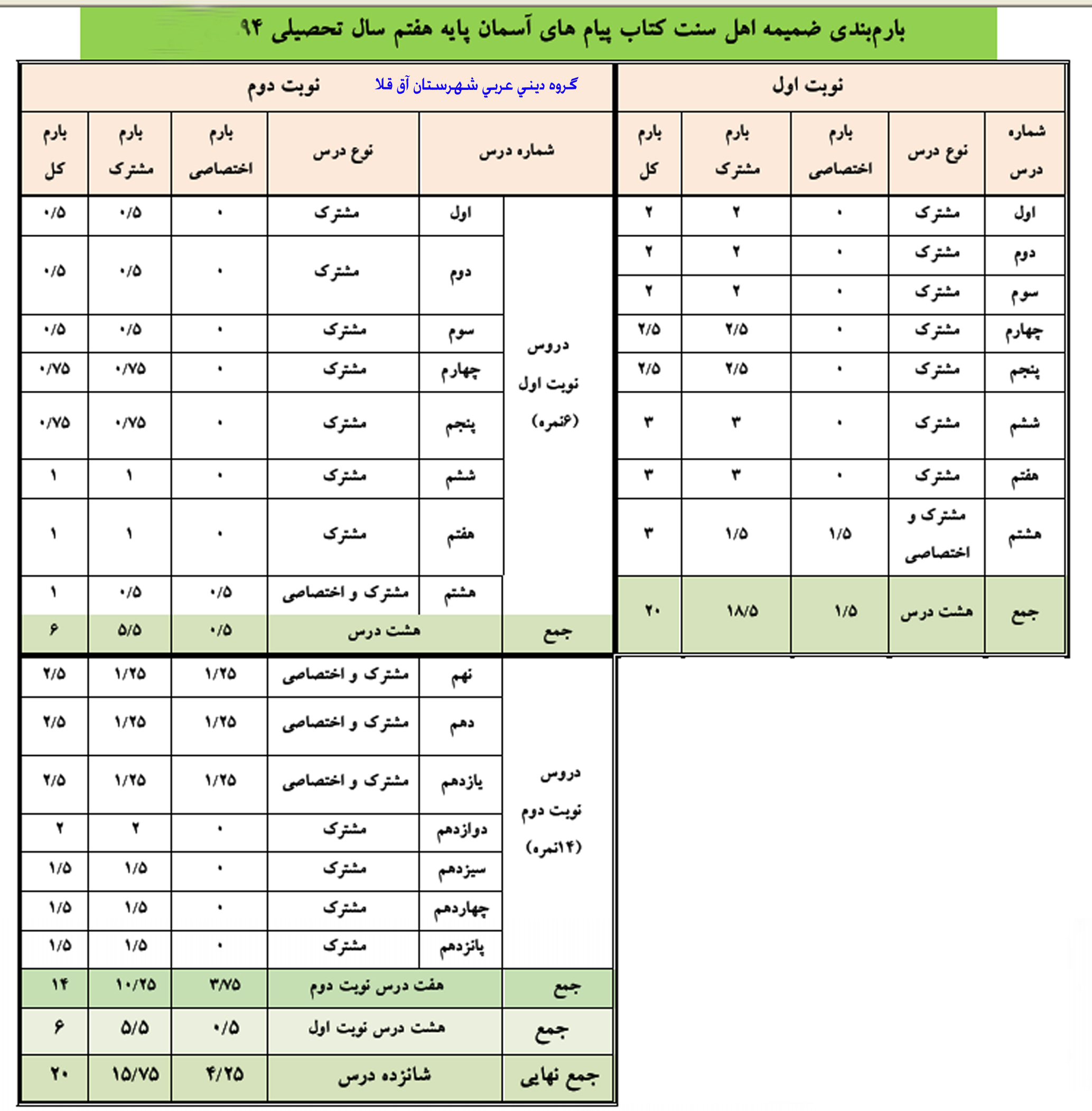 تصاوير بارم بندي و طرح درس سالانه دروس ديني، قران، عربي جهت استفاده همكاران تقديم مي گردد.